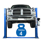 г/п. - 4 т. Для подъема легковых автомобилей всех моделей и марок при их техническом обслуживании и ремонте. Максимальное расстояние между подхватами: 2550 мм. Высота подъема лап (с подхватами): 1800 (1990) мм Длина задних лап: 780-1200 мм. Длина передних лап: 780-1200 мм. Толщина металла в стойках - 5,2 мм, толщина тросов синхронизации - 9 мм. Вес: 630 кг.
