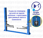 г/п. до 4 тонн, предназначен для подъема легковых автомобилей, внедорожников, пикапов и легких грузовиков. Снятие и установка на «стопора» с пульта управления (электростопора). Максимальное расстояние между подхватами: 2550 мм. Высота подъема лап (с подхватами): 1800 (1990) мм. Длина задних лап: 780-1200 мм. Длина передних лап: 780-1200 мм. Вес: 700 кг.