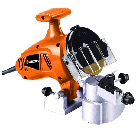 Посадочный диаметр 22,3 мм. Диаметр диска 114 мм. Частота вращения 5 000 об/мин. Мощность 100 Вт. Станок предназначен для заточки зубьев пильной цепи бензиновых и электрических цепных пил. Регулировки угла заточки цепи. Можно затачивать кромку пил и другие острые металлические инструменты, даёт возможность поправить фрезы, резцы и сверла. Механизм фиксации и регулировки угла зубья цепи.