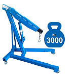 Для профессионального применения. Грузоподъемность 3т. Не складной. Высота подъема 330-2450 мм. Предназначен для подъема и транспортировки автомобильных узлов, агрегатов и любых других грузов как внутри помещения так и на улице. Вынос стрелы регулируется в соответствии с максимальной грузоподъемностью крана – 1000-3000кг. Рабочим приводом крана является гидроцилиндр.