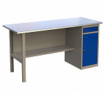 Верстак однотумбовый поставляется в разобранном виде. Нагрузка на столешницу до 600 кг. Стандартный цвет: корпус - серый глянец RAL 7030, ящики и двери тумб - синий RAL 5017. Размеры:855x1400x700 мм. Вес: 76 кг.