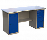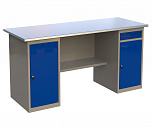 Стол бестумбовый поставляется в разобранном виде (4 места). Нагрузка на столешницу до 600 кг. Стандартный цвет: корпус - серый глянец RAL 7030, ящики и двери тумб - синий RAL 5017. Размеры: 855х1600х700мм. Вес: 51 кг.