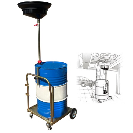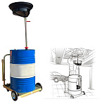 Установка для слива/сбора «отработки», антифриза в бочки 60÷220л. на подкатной анодированной тележке. Для любых транспортных средств, вывешенных на подъёмнике. Высота регулируется зажимом 1450÷2050мм. Фиксатор бочки на тележке. Сетка для улавливания мелких деталей, фильтров и предотвращения разбрызгивания. Поворотная воронка 360⁰ со смещённым сливным отверстием. Шаровой кран для контроля слива. Обрезиненные колёса большого диаметра для не ровных полов. Контроль заполняемости бочки через отверстие для воздуха.