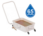 Мобильная ванна для слива масла и антифриза. Ручка складывается. Емкость 65 литров с сеткой для улавливания мелких предметов. Чаша (воронка) для сбора масла не позволяет разбрызгивать масло и антифриз при сливе. Колёса 2 прямых + 2 поворотных. Для любых легковых и грузовых автомобилей. Масса 25 кг. Размеры тележки: (ДxШxВ) 700*500*250 мм.