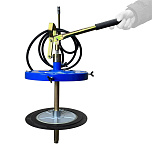 Нагнетатель предназначен для раздачи густой смазки из бочек объемом 190 л. Состоит из 2-х независимых и раздельных насосных систем, что предотвращает попадание отработанной влаги компрессора в емкость с перекачиваемым маслом. Длина шланга: 6 м. Давление смазки: 180-405 бар. Коэффициент передачи давления: 5:1. Производительность: 30 см³/с. Длина раздаточного шланга: 305 см. Вес: 15,5 кг.
