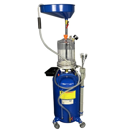 Для слива/откачки масла через щупы или самотёком. Регулировка высоты чаши 970-1570мм. Комплектация: щупы - 5 гибких разного диаметра, манометр (давление/вакуум), лоток, прозрачная трубка для контроля «отработки» в баке. Подключение к пневмолинии - быстросъём. Ёмкость 90л. = Бак 80л + сливная воронка 10л.