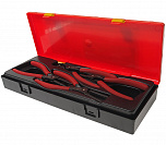 Набор съемников стопорных колец (щипцы) (4 предмета) в прочном презентабельном боксе. Изготовлено из хром-ванадиевой стали, что обеспечивает высокую прочность и жесткость инструмента.