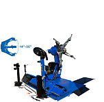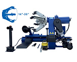 Диски сталь, AL, с кольцами и без, 19-26”, Колесо макс. Ø1400 ширина 470мм, вес до 380кг. Мотор 3300Вт. Гарантия 12мес. Встроенный подъёмник колеса. Возможна установка в малые помещения и к стене цеха. Доставляем грузовой шиномонтажный станок по РФ и странам ТС.