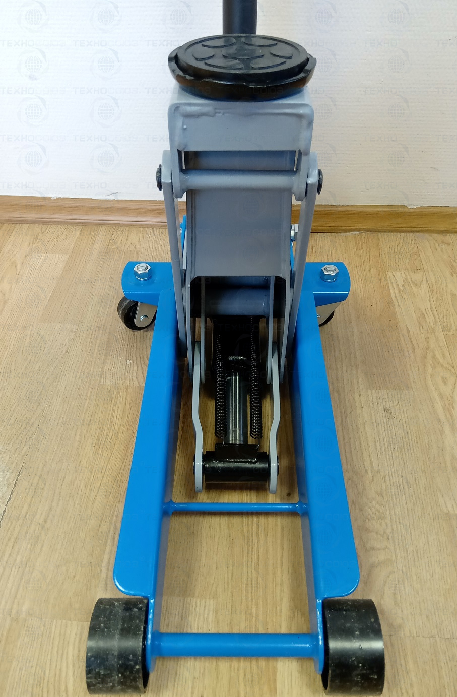 Увеличенный диаметр металлических колес домкрата Ǿ-86мм, позволяет легко транспортировать его по не ровным поверхностям.