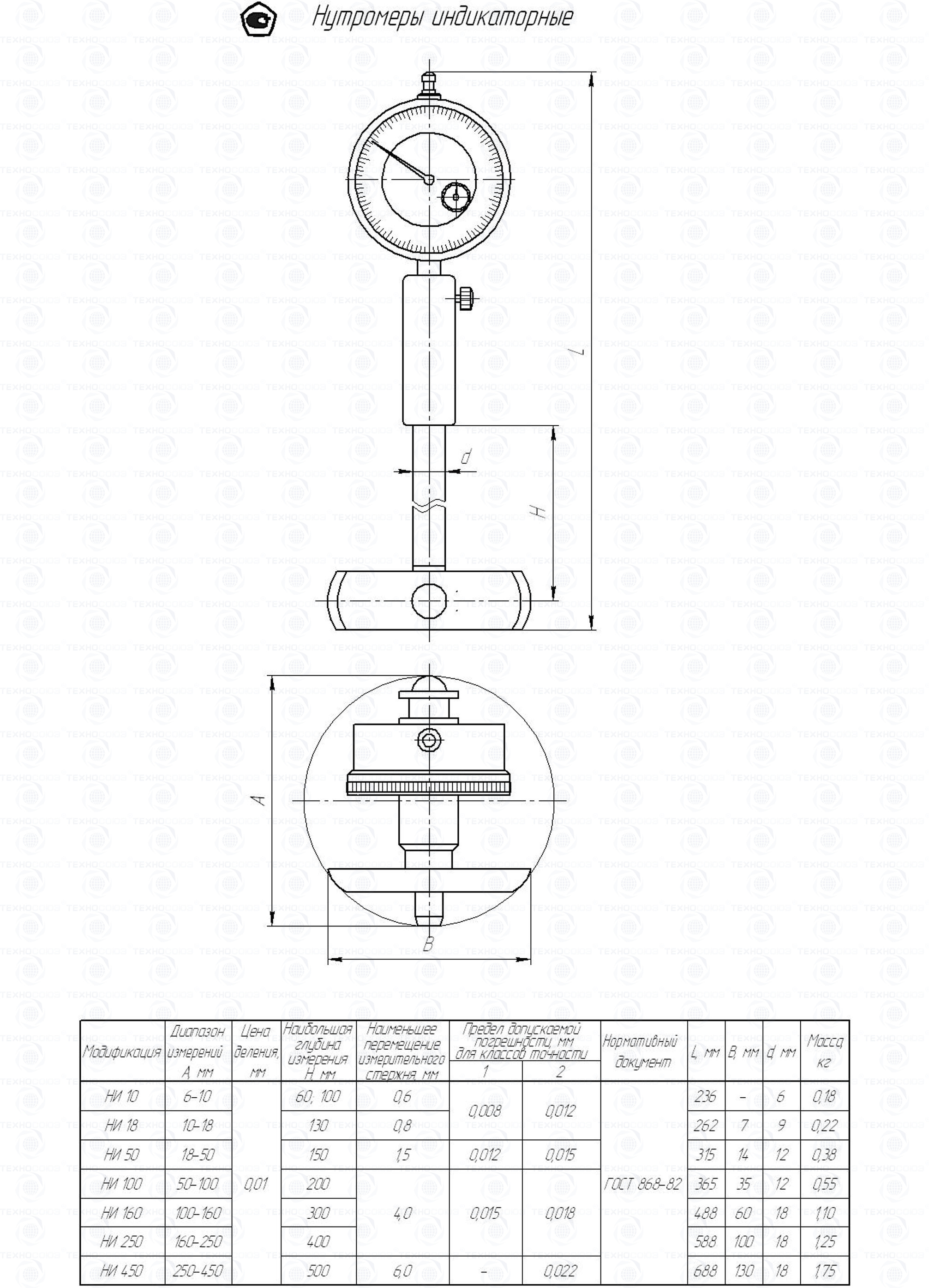 Нутромеры индикаторные с ценой деления 0,01 мм. Предназначен для измерения внутренних размеров от 250 до 450 мм. В нутромерах  перемещение подвижного измерительного стержня передается на отсчетное устройство при помощи рычажной передачи. Класса точности 1. ГОСТ 868-82. Поставляется в двух вариантах с поверкой и без поверки!