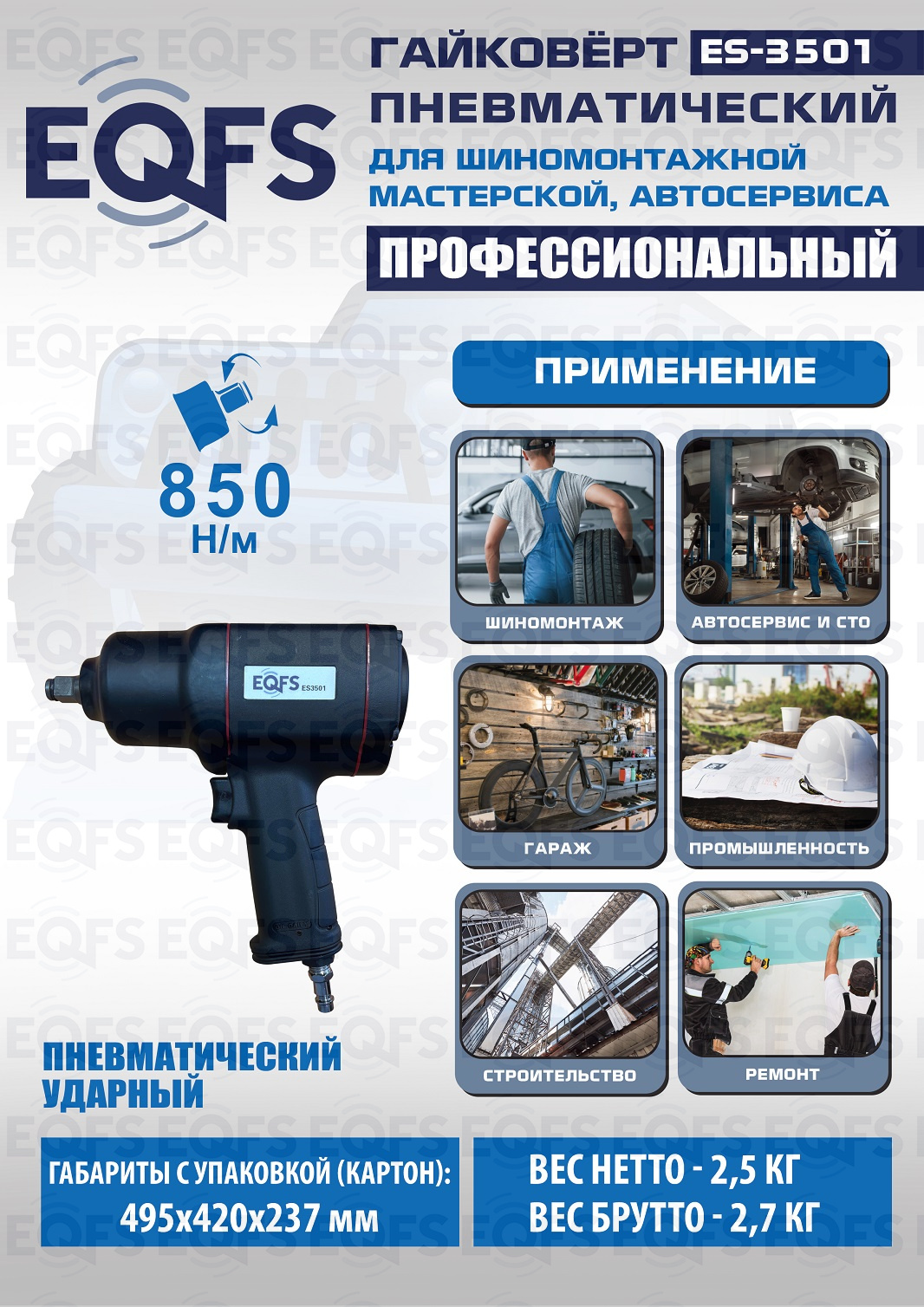 Пневмогайковерт 1/2", 850Нм, ES3501