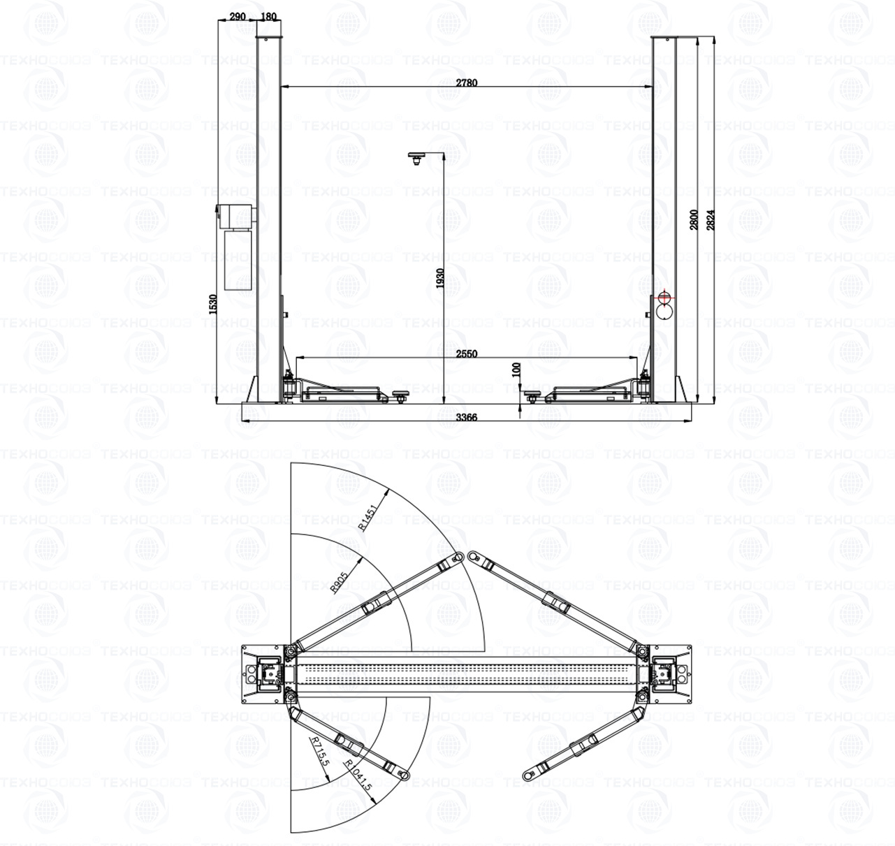 ·         Два гидравлических цилиндра, что приводит к увеличению срока службы подъемника. Нагрузка распределяется равномерно на 2 цилиндра.