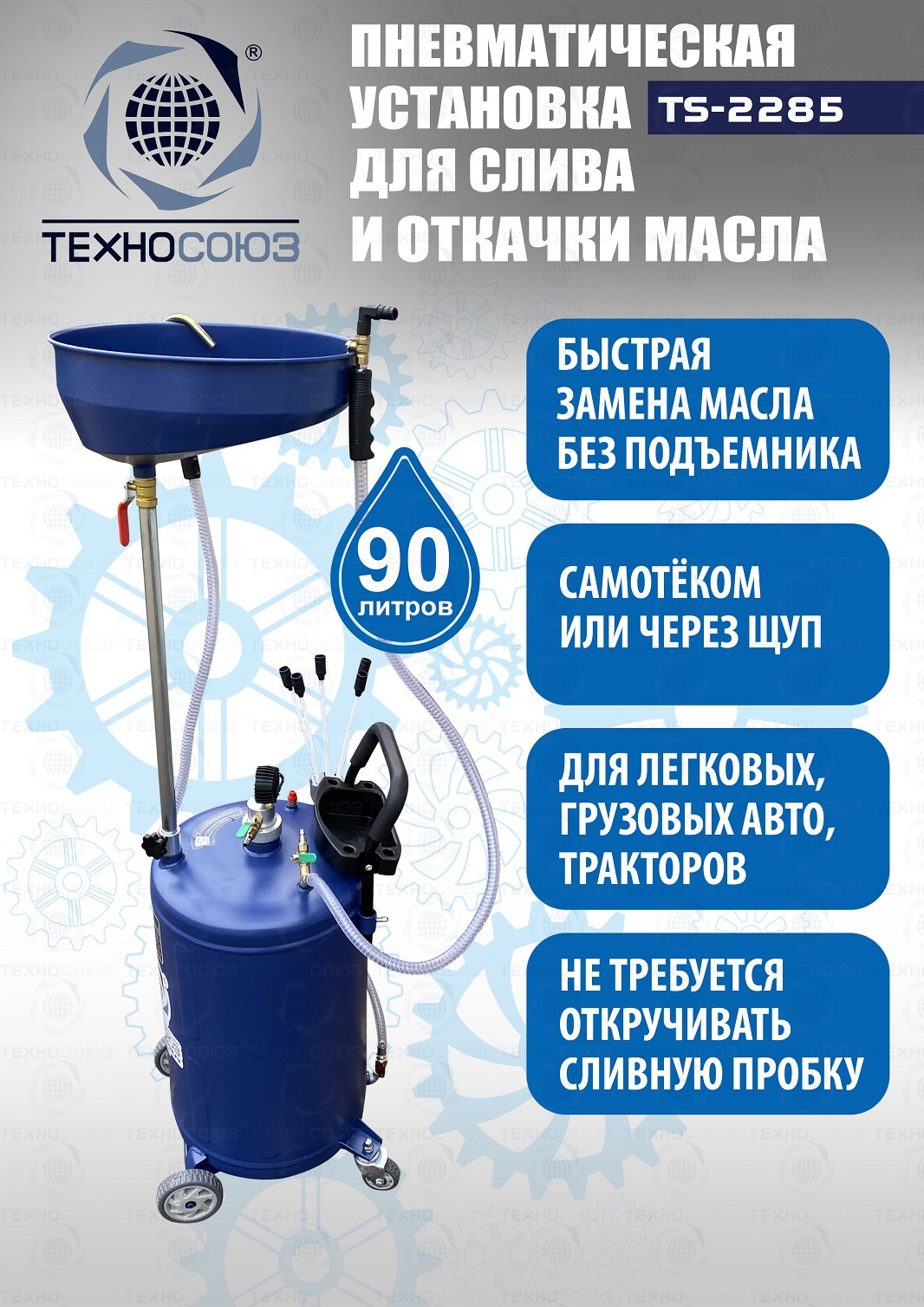 Технические особенности установки для слива и откачки масла щупами TS-2285: